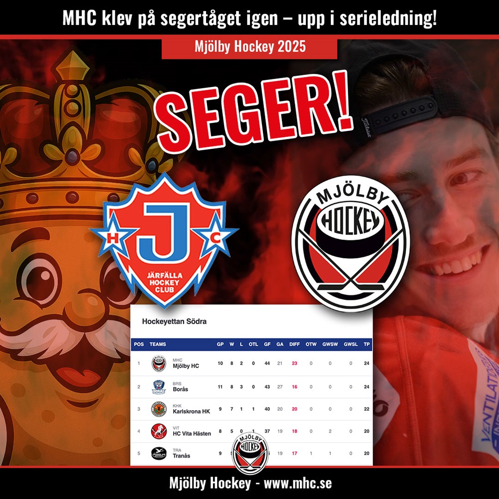 I den tredje perioden fortsatt MHC att övertyga och tog med sig alla tre poäng hem till Östergötland. Det innebär att laget nu är serieledare i Hockeyettan Södra, i en haltande tabell där lagen har spelat olika många matcher.