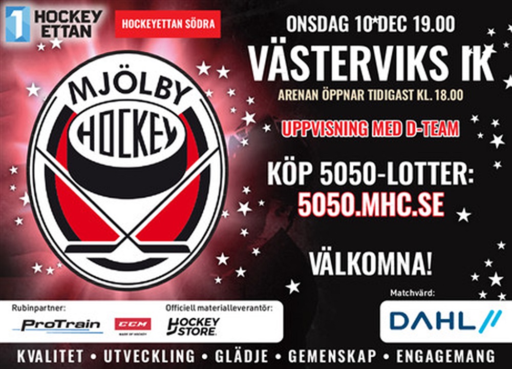 På fredag borta mot Visby/Roma, men sedan två matcher på hemmaisen. Närmast Västerviks IK och sedan Halmstad Hammers söndagen den 14 december OBS kl 17.00. Följ Visbymatchen i Visby (!) eller på Hockeyettan Play!