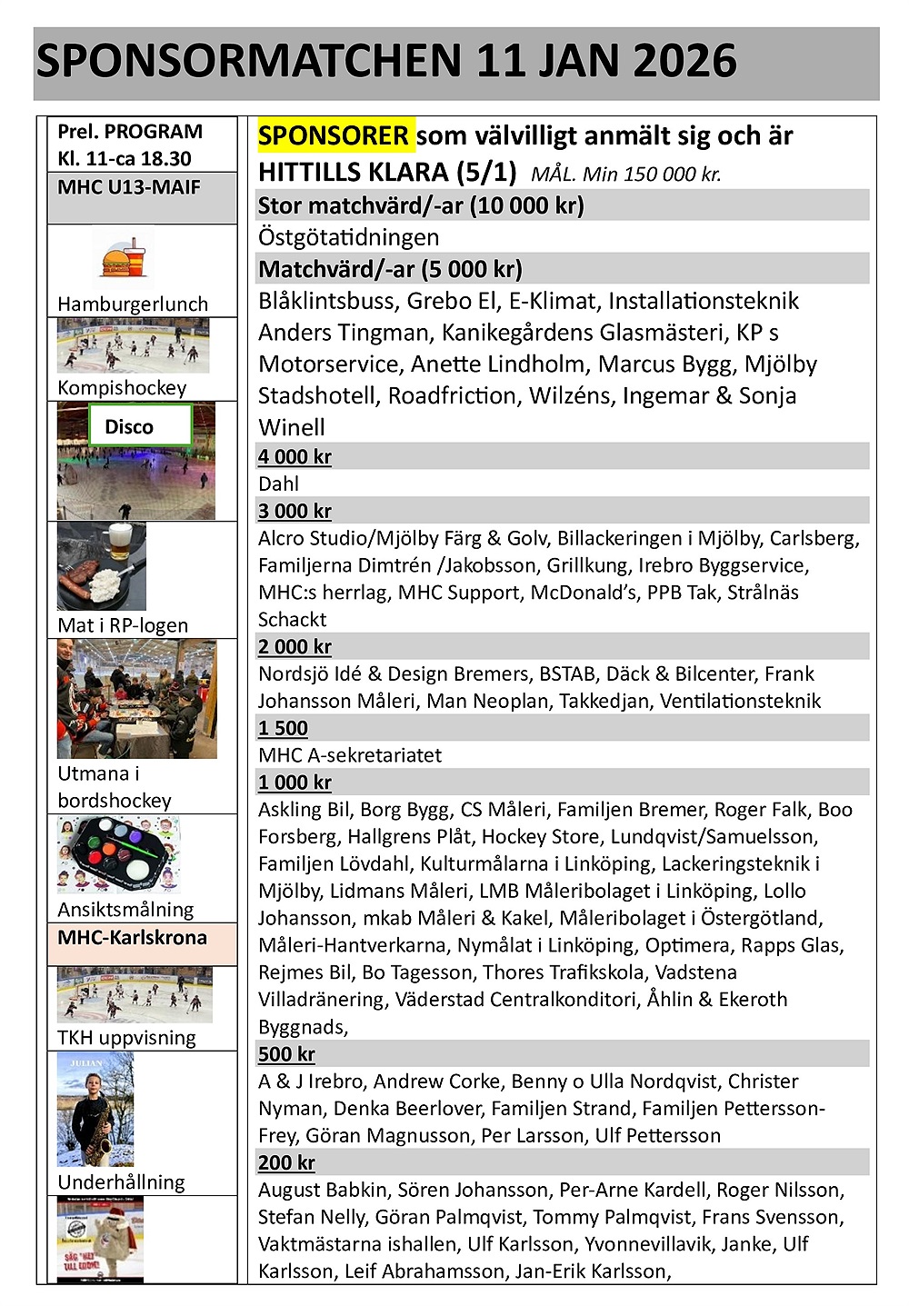Uppdatering. Sponsormatchen 11 jan.